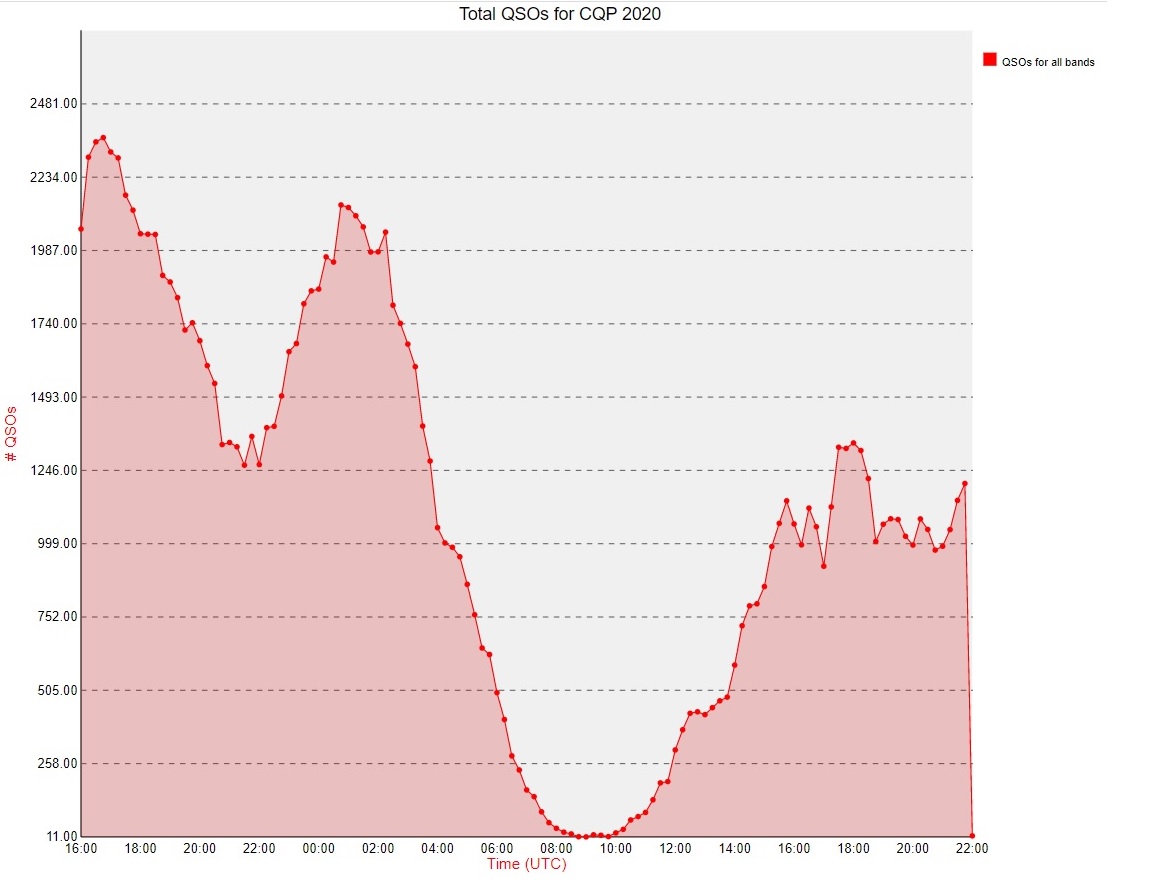 CQP 2020 Total QSOs per Hour (low sunspot activity)