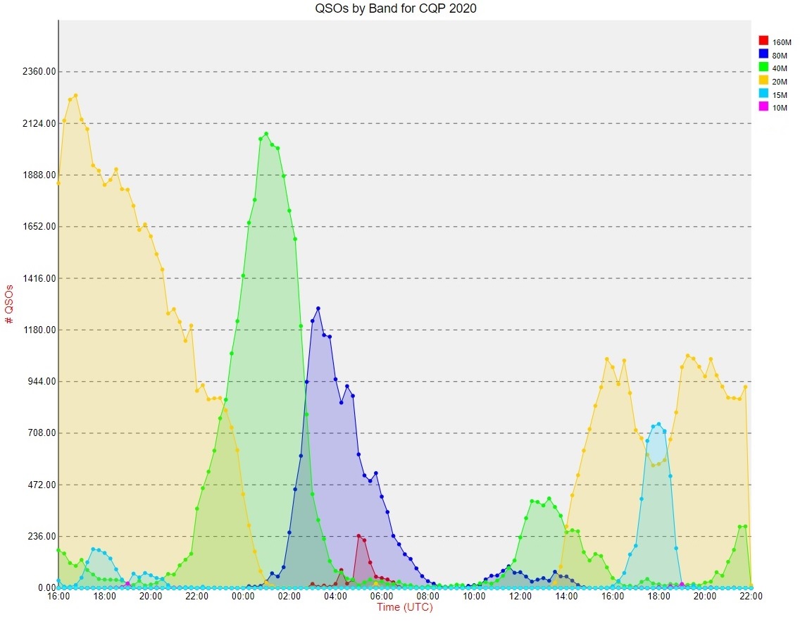 CQP 2020 Total QSOs per Hour (low sunspot activity)