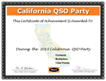 If you participated in the 2013 California QSO Party, and submitted your log, you will be able to print a customized Certificate from our website. You can print both a Personal Certificate and, if you operated as part of a team, also a Team Certificate. Since there are many combinations of operators, categories, and callsigns, follow these general guidelines, to print your certificate.