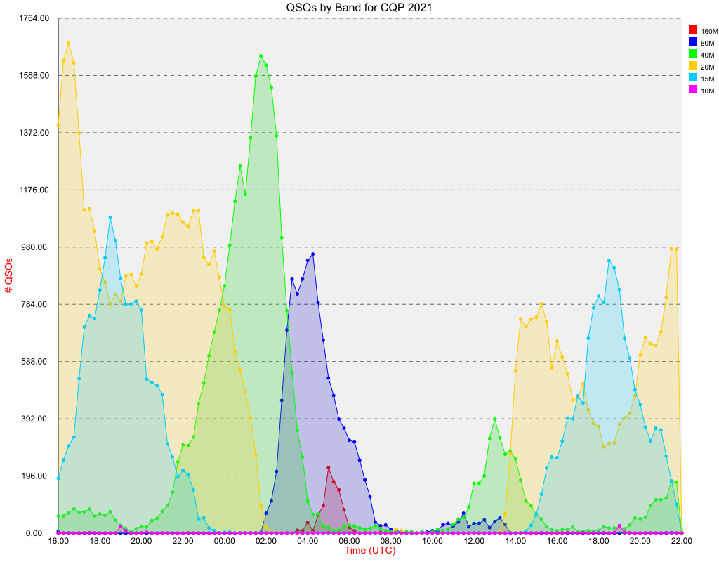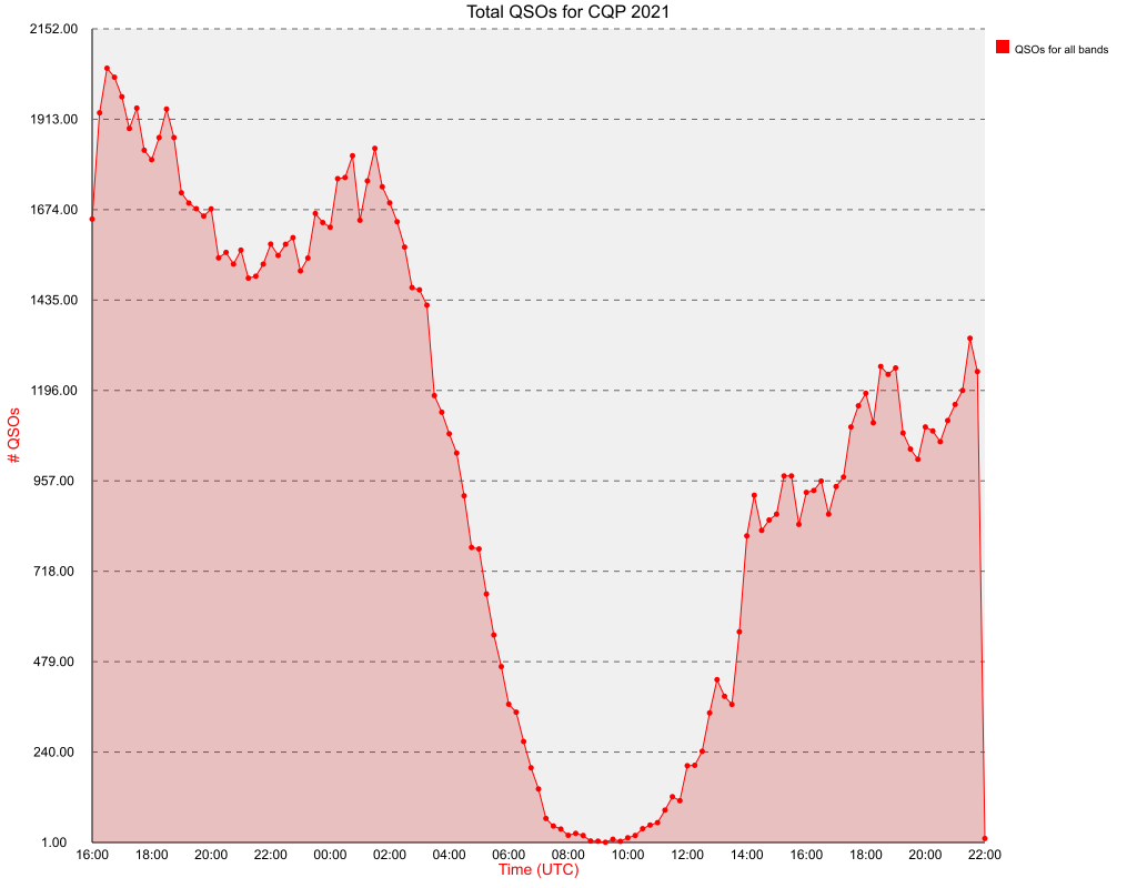 Total Number of QSOs by Hour and By Band